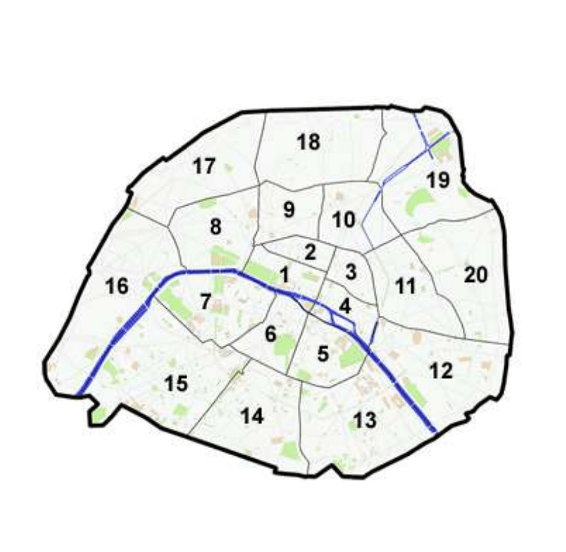 Geografía y administración. La ciudad de París apenas alberga algo más de 2.000.000 de habitantes, se sitúa sobre un largo meandro del río Sena y a su alrededor crece la conurbación que rodea la ciudad y que en total alcanza más de 11.000.000 de habitantes. El París actual es el resultado del plan urbanístico del Barón Haussmann, quien a mediados del siglo XIX redefinió el caótico trazado medieval existente en la ciudad para sustituirlo por las amplias avenidas alineadas de edificios neoclásicos que actualmente conforman el paisaje de la mayor parte de París. La ciudad se encuentra dividida en 20 distritos distribuidos en forma de espiral cuyo centro se encuentra en a isla de La Cité, corazón y lugar de nacimiento de la ciudad. Estos distritos administrativos, a diferencia de en la mayor parte de ciudades europeas, no tienen nombre sino que se distinguen por un número. Los distritos 1, 2, 3 y 4 forman el centro de París, los distritos 5, 6 y 7 son conocidos por ser cuna de movimientos culturales y tendencias, los distritos 8 y 9 están reservados para